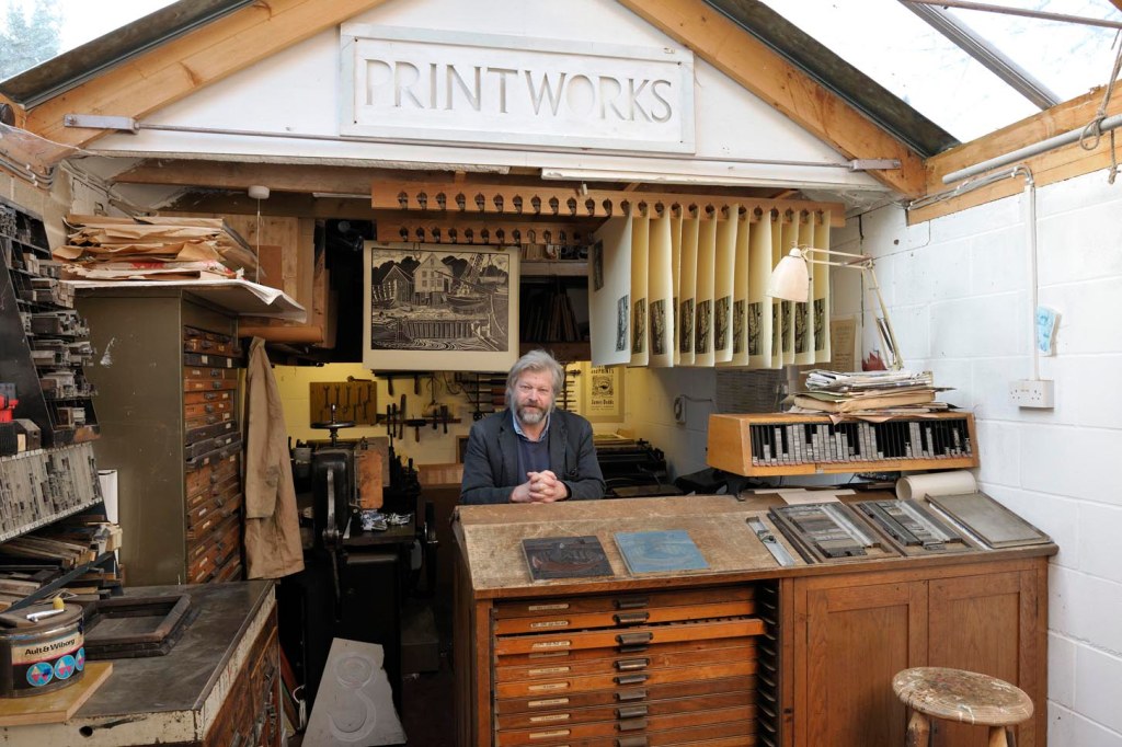 James lives and works in Wivenhoe, Essex. His print studio sits beside his home, while his painting studio is located a short walk away on the banks of the River Colne. His work spans a wide range of disciplines, including painting, carving, stained glass, and linocut. (For more information on his prints and books, visit Jardine Press.)